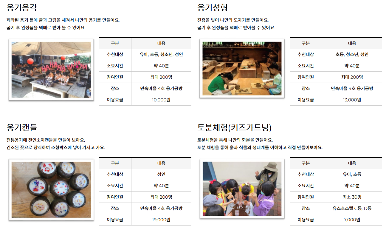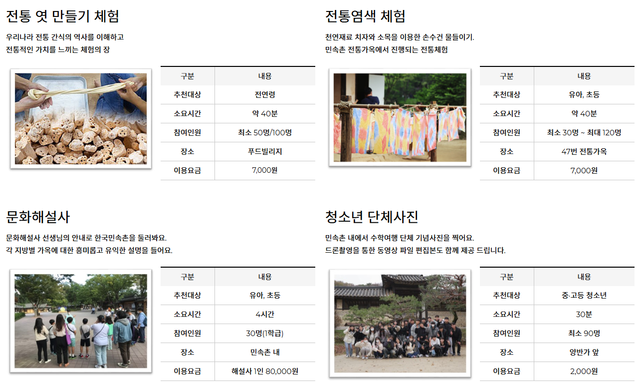 - 편의점: 민속촌 입구 맞은편 CU와 세븐일레븐 운영 중
