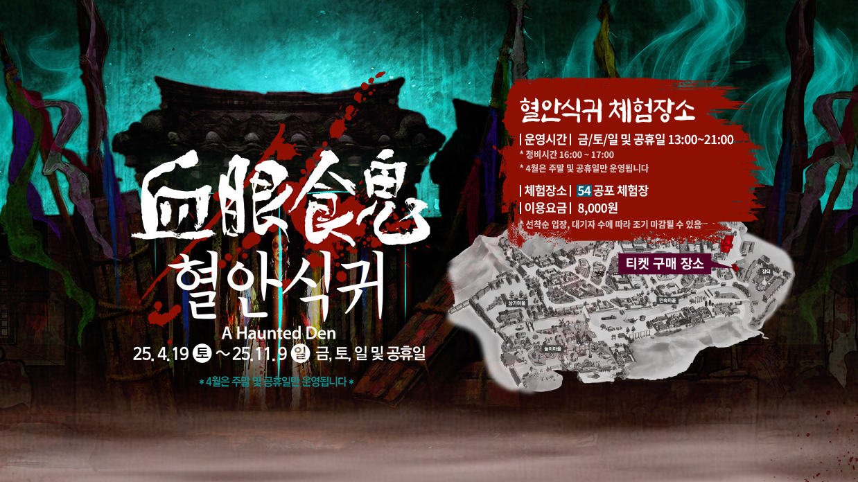 - 공포체험 '혈안식귀’: 한밤의 민속촌, 등골 서늘한 진짜 공포를 느껴보세요.