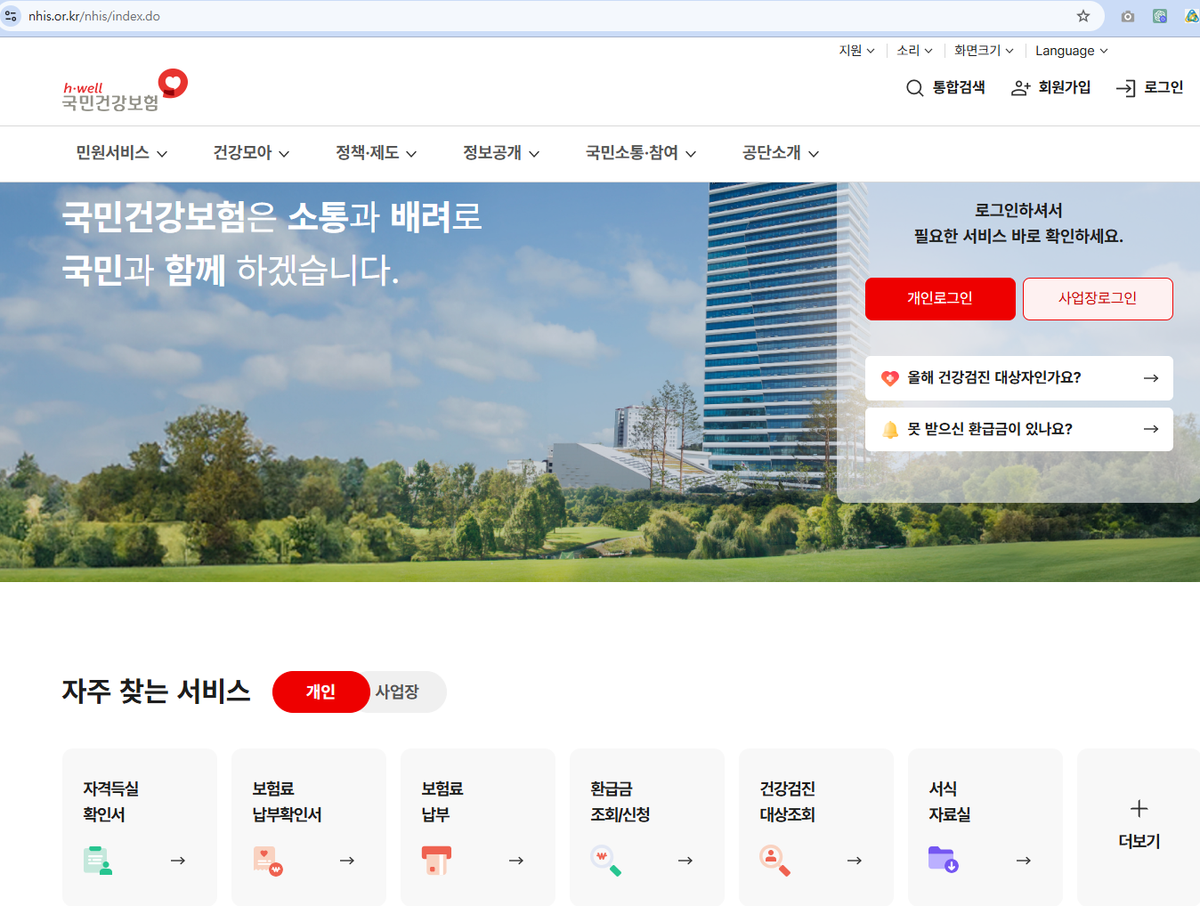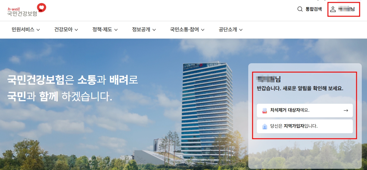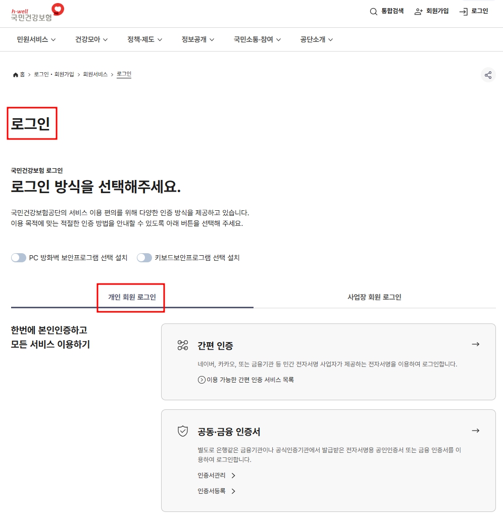 - 국민건강보험공단 홈페이지 접속