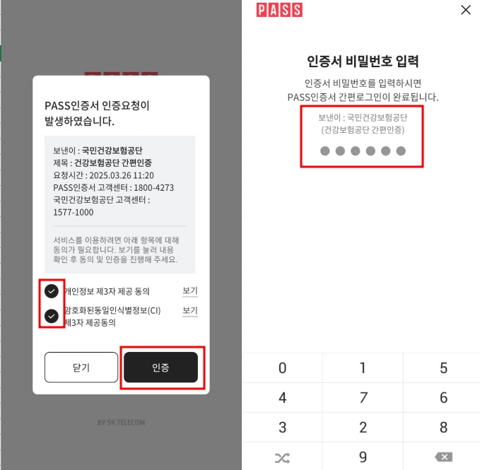 이렇게 국민건강보험공단 PASS인증 요청 문자가 오면 클릭하세요