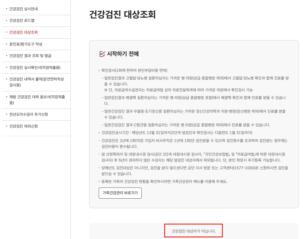 여기서 내가 건강검진 대상인지 확인가능합니다.